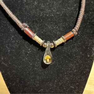 Mushroom Hemp Choker Handmade Yellow Glass Mushroom Bead Necklace