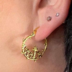 Stay on trend with these fun, quirky Mushroom Hoop Earrings! The antiqued gold finish adds a touch of vintage vibes, plus they're the perfect size for making a statement without being too over-the-top. Accessorize with confidence - these mushroom-inspired hoops won't be going out of style any time soon!