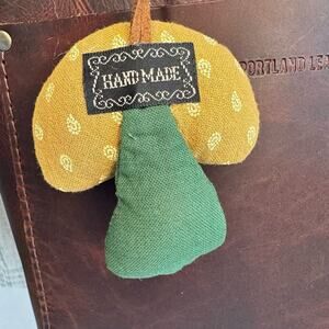 These look great with Portland Leather Goods purses, it’s a nice way to dress up that real leather with a boho flair. This is a fabric charm. It is so cute, it is hand sewn. The leather handle is super long, I had it wrapped around the purse handle here so it would hang on the purse, it can be easily trimmed so it hangs at the right height for your purse.