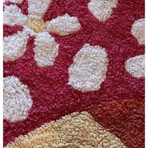 Mushroom Shaped Rug Red/Pink Mushroom & Off White Flowers Yellow Stem 36" X 24"
