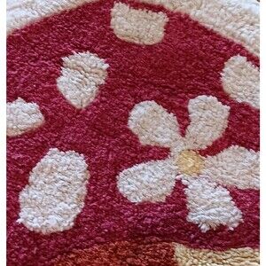 Mushroom Shaped Rug Red/Pink Mushroom & Off White Flowers Yellow Stem