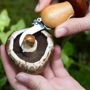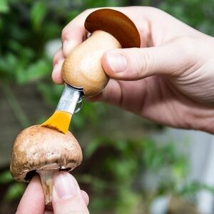 Forage, clip, and clean wild mushrooms with this handy tool. Putting the "Fun" in "Fungi", this handy keychain tool is designed for mushroom picking in the wild. Features a blade and brush for clipping and cleaning.