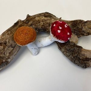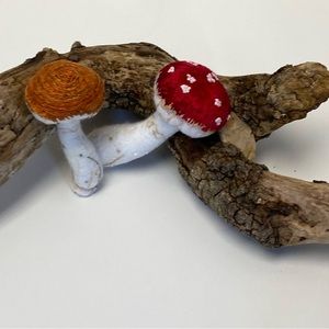 Size 4 inches by 2 inches and 2x3” mushroom. Decoration only, not a toy or intended for children Mixed media nature inspired art