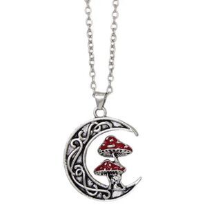 Mushroom pendant necklace in silver tone hardware