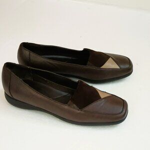 Mushrooms Leather Color Block Loafers 7.5 Brown & Tan Slip On Shoes