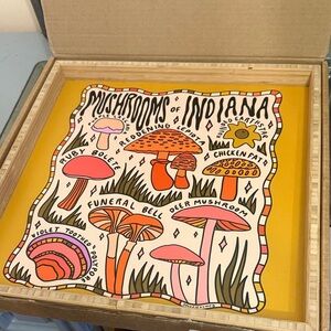 Are you from Indiana? Do you love ‘shrooms? Get this! It’s actually a tray. 16” x 16”. Thought it was art for your wall. Idk!