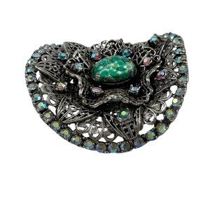 Musi Rhinestone Shoe Clips Filigree Aurora Borealis Faux Opal Cabochon Vtg 1960s