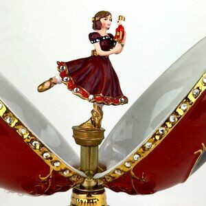 Rare 2004 Ardleigh Elliott Clara and the Nutcracker Ballet Musical Egg, the first issue in The Nutcracker Ballet Collection. This exquisite collectible music box opens to reveal a hand-painted ballerina, inspired by Clara, performing a solo with her nutcracker, accompanied by the iconic "Dance of the Sugar Plum Fairy" melody. 6" tall x 3" wide.
