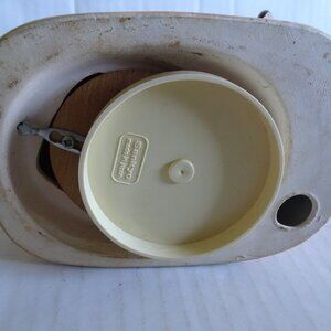 The base winds up and the bench with the man and dog gently turn as a light tune plays.