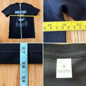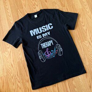 Music Is My Therapy T Shirt Size M Black Graphic Tee Headphones Treble Clef Note