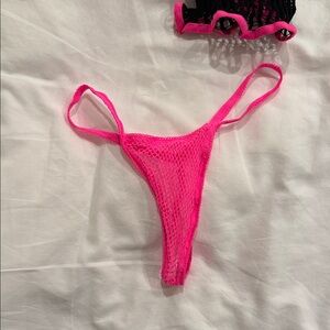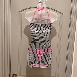 NWOT Mesh black dress with bold pink trim and pink g-string. Never worn or tried on.