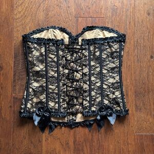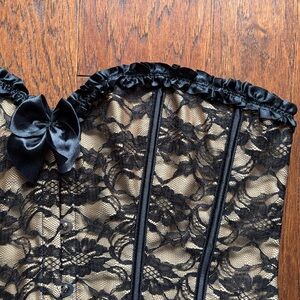 Music Legs Lace Corset & Thong Set | Lingerie Black and Cream | NWOT