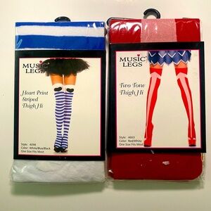 Music Legs Two Tone and Heart Print Thigh High Socks - Red, White, Blue