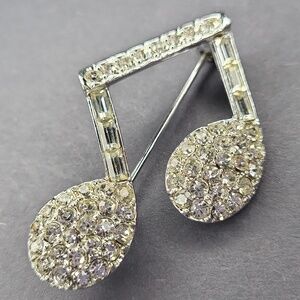 Absolutely stunning, vibrant crystals and silver like liquid, smooth and sleek. This beautiful vintage music note crystal encrusted is fantastic!