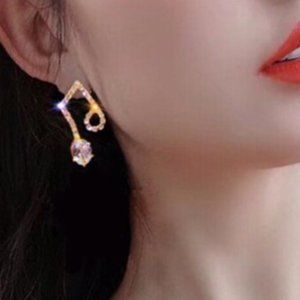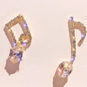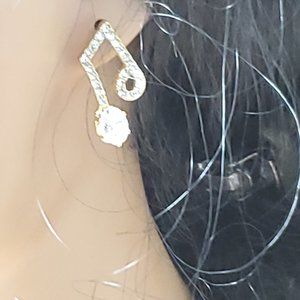 Music Notes Earrings in Gold Zinc Alloy & Crystals. Beam Quaver, 8th Notes
