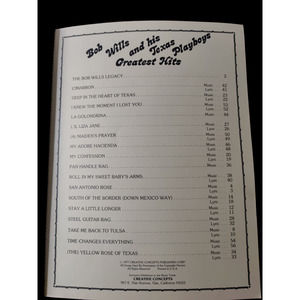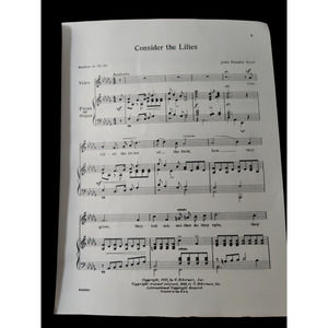 9 page sheet music for voice, organ or piano of Consider The Lillies, also included is 56 page, dated 1977 of Bob Wills and his Texas Playboys greatest hits.