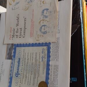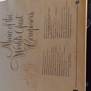Vintage vinyl record featuring music from the world's great composers. Includes a variety of classical instruments on the cover.like New Condition