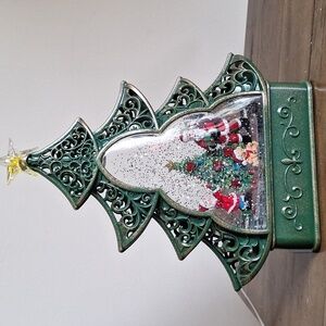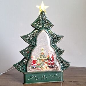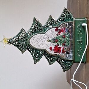 Illuminate your holiday decor with this enchanting green Christmas tree snow globe. Featuring a delightful scene inside and topped with a glowing LED star, it's perfect for adding festive charm to any room. Plays "Jingle bells", "We wish you a Merry Christmas", "Scilent Night", "Deck the Halls", "Joy to the World", "Noel", "Oh, Christmas tree" and one other one, I couldn't remember. Bring some magic this season into your home!