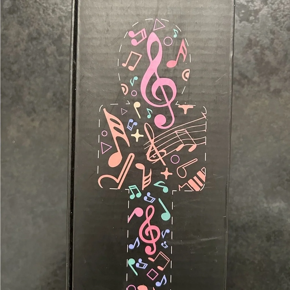 Black box with colorful musical note pattern. Perfect for music lovers.