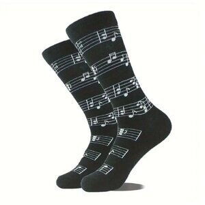 Step into a harmonious blend of comfort and style with these crew socks, adorned with musical notes. Perfect for music enthusiasts and cozy days.