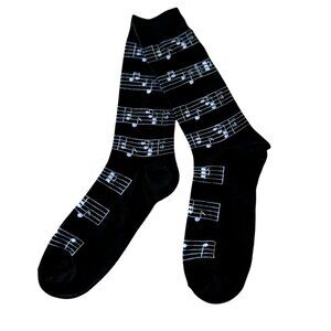 Musical Note Printed Black Crew Socks Concert Musician Music Novelty Singer