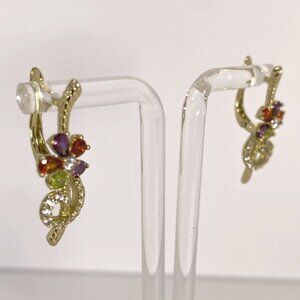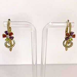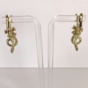 Musical note key note music symbol gold tone rhinestone latch-back earrings OS