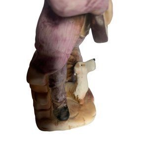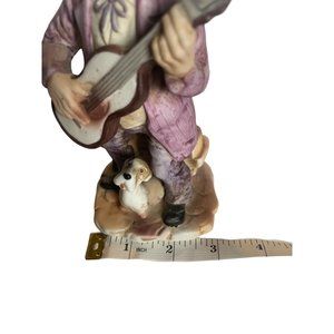 Charming figurine of a musician man with his dog and guitar. Stands at 7 inches tall and 3 inches across the bottom. In good condition.
