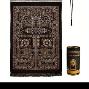 1pc, Muslim Prayer Rug( janamaz) And Prayer Beads ( tasbeeh) With Elegant Design Cylinder Gift Box,