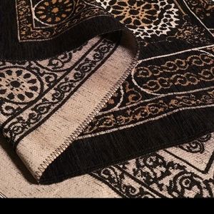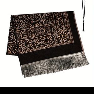 Beautiful full size black prayer mat with Kaba designs.