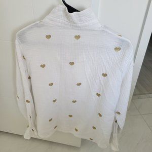 white muslin blouse with golden heart closed with buttons like brand new condition size s/m