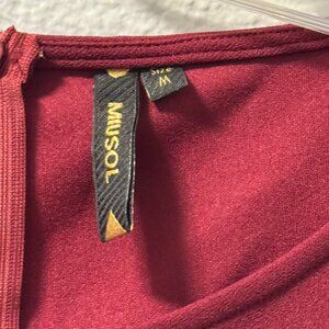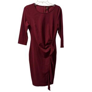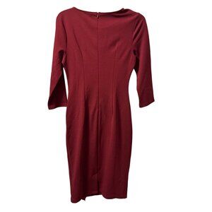 Musol Burgundy Dress With 3/4 Sleeves & Back Zipper Size M Polyester/Spandex Ble