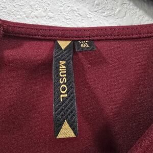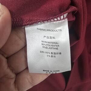 The Musol Women's Burgundy Ruffle Sleeve Cocktail Dress is a stunning formal option for parties or events. The v-neck midi dress features a round neckline, sleeveless design, and ruffle accents, adding a touch of elegance. Made of polyester, this size 4XL dress is perfect for a variety of occasions including weddings, workwear, and casual outings. The rich red color and solid pattern make it a versatile choice for any season. With easy care instructions of hand wash only, this dress is a convenient and stylish addition to any woman's wardrobe.