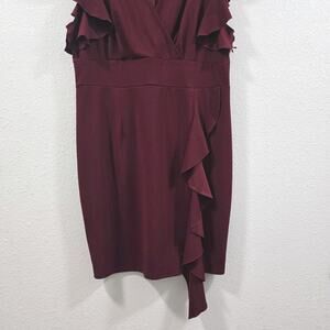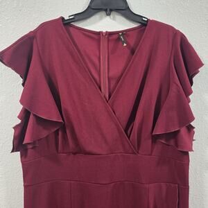 Musol Womens Burgundy Ruffle Sleeve Cocktail Dress V-Neck Midi Party Formal 4XL