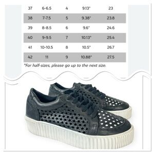 Soft Black Perforated Leather Sneakers by Musse & Cloud. Platform Rubber Soles and Lace Up Front. Size Chart in Photos 38=7-7.5