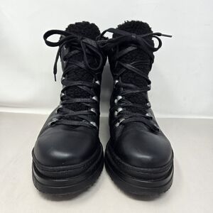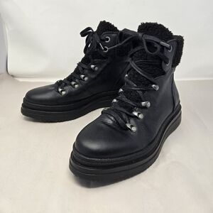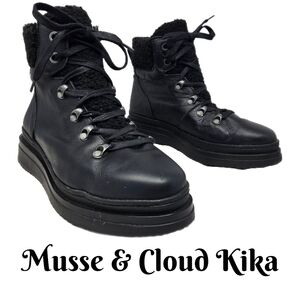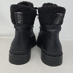 Musse & Cloud Kika Black Leather Ankle Boots Womens Sz 10 Faux Sherpa