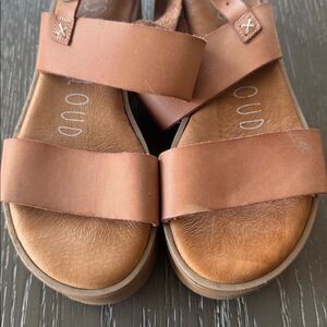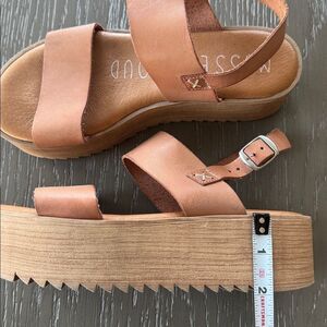 Musse & Cloud Natural Tan Leather Strappy Sandals Platform Boho Casual Comfortable Women’s Size EU37