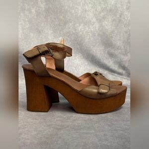 Musse & cloud wooden/leather platform heels Women's size 10 Made in Spain