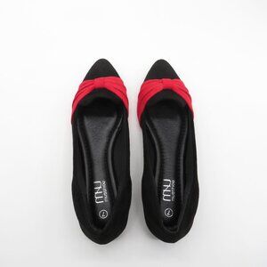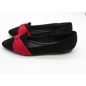 Musshoe Women's Black & Red Pointed Toe Flats With Bow Detail Size 7 NEW
