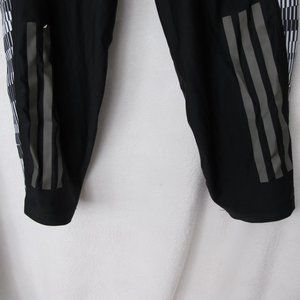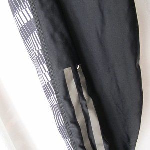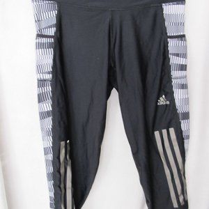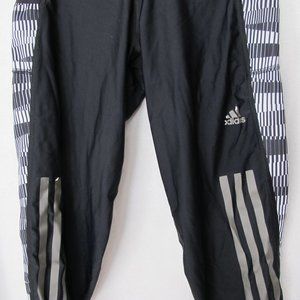 Good used condition - pants are in great condition other than some of the reflective decal peeling (Adidas logo and on one stripe as shown in pictures). Adidas Women's Supernova Climacool Knee Length Running Pants - size XS. Black with black/white/gray print. Large reflective Adidas 3-stripe on both legs. Side pockets and zip back waistband pocket. Laid flat measuring across the front of the waistband measures approximately 12 inches and the inseam measures approximately 15 inches.