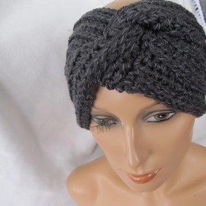 New - New - Handmade Earwarmer Headband - Hand crocheted with a charcoal acrylic/polyester blend yarn with reflective thread throughout. Average one size fits most. Twist style front, pull-on headband to cover the ears in the winter. Reflective style so great for winter sports or just to ensure you are seen.