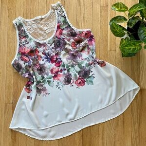 Must HAVE Floral Lace-Back High-Low Sleeveless Graphic Camisole Blouse Size Medium