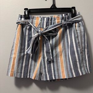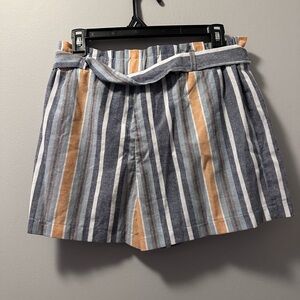 Must Have Striped Women Shorts with Belt paper bag style blue orange white