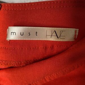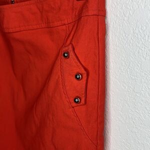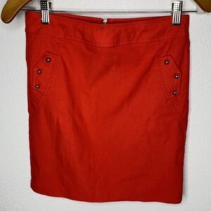 Must Have Orange pencil mini skirt. Features silver studs on pocket flap on sides of the skirt as well as exposed zipper in back. Measures approximately waist flat lay 14” length 16”. Size S/M In excellent condition.