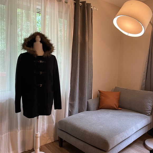 3 buckles give this piece a formal look but the hood brings it down a notch!