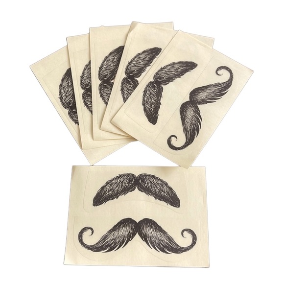 Set of 6 totally cool mustache stickers, 12 stickers in all! They are clear stickers with 2 shapes of staches. Perfect for any and all occasions!