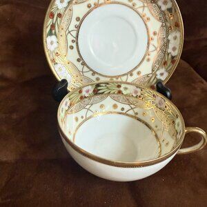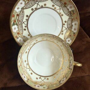 Mustache Tea Cup and Saucer Nippon Noritake Hand Painted Antique