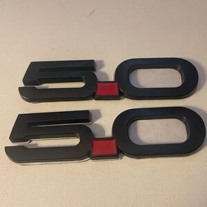 Mustang 5.0 3D Left Right Fender Emblems for 2015 - 2020 set of 2 Matte Black/Red NWT
