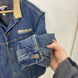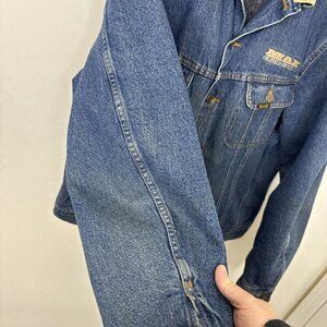 Mustang Stormrider Men L Blanket Lined Denim Jacket Blue Oilfield Logo