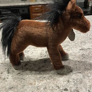This charming stuffed horse from Russ Berrie features a rich brown coat with a contrasting black tail, capturing the essence of a real horse. Crafted with soft, plush material, it offers a delightful tactile experience. Its detailed design and sturdy construction make it a perfect companion for imaginative adventures.