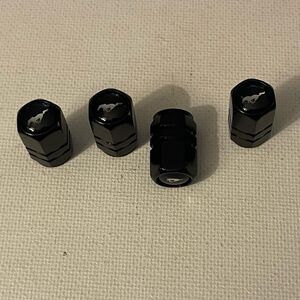 Mustang Logo valve Stem caps in Black set of 4. New in Pack